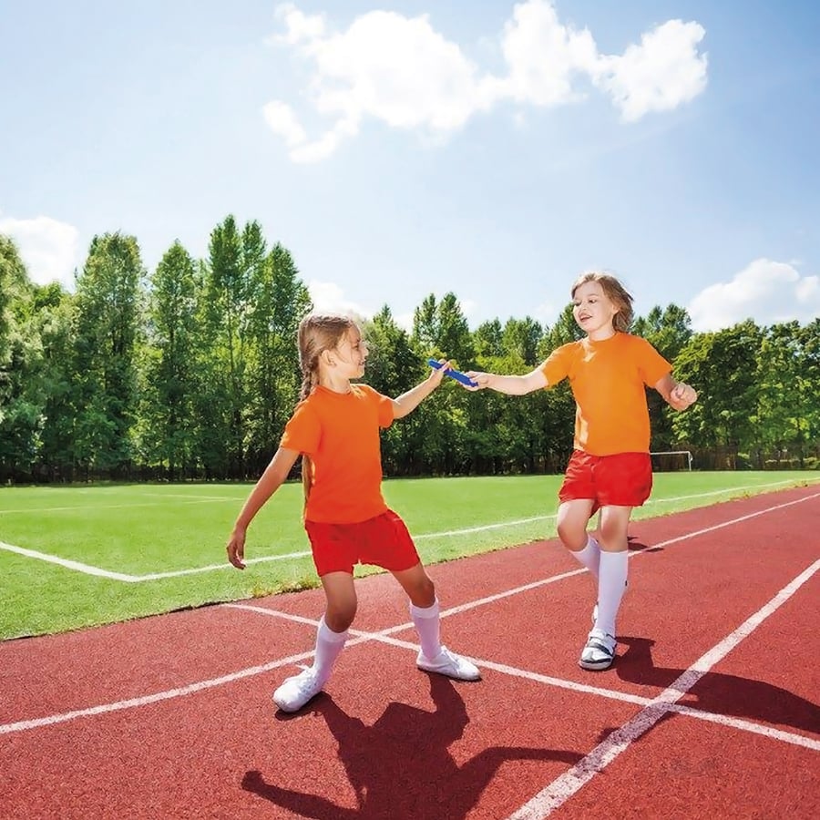 אחיזה נוחה ובטוחה: המקלות מותאמים לכף יד של ילדים ונוער, עם מרקם המונע החלקה בזמן ההעברה (Hand-off) המהירה בין הרצים.